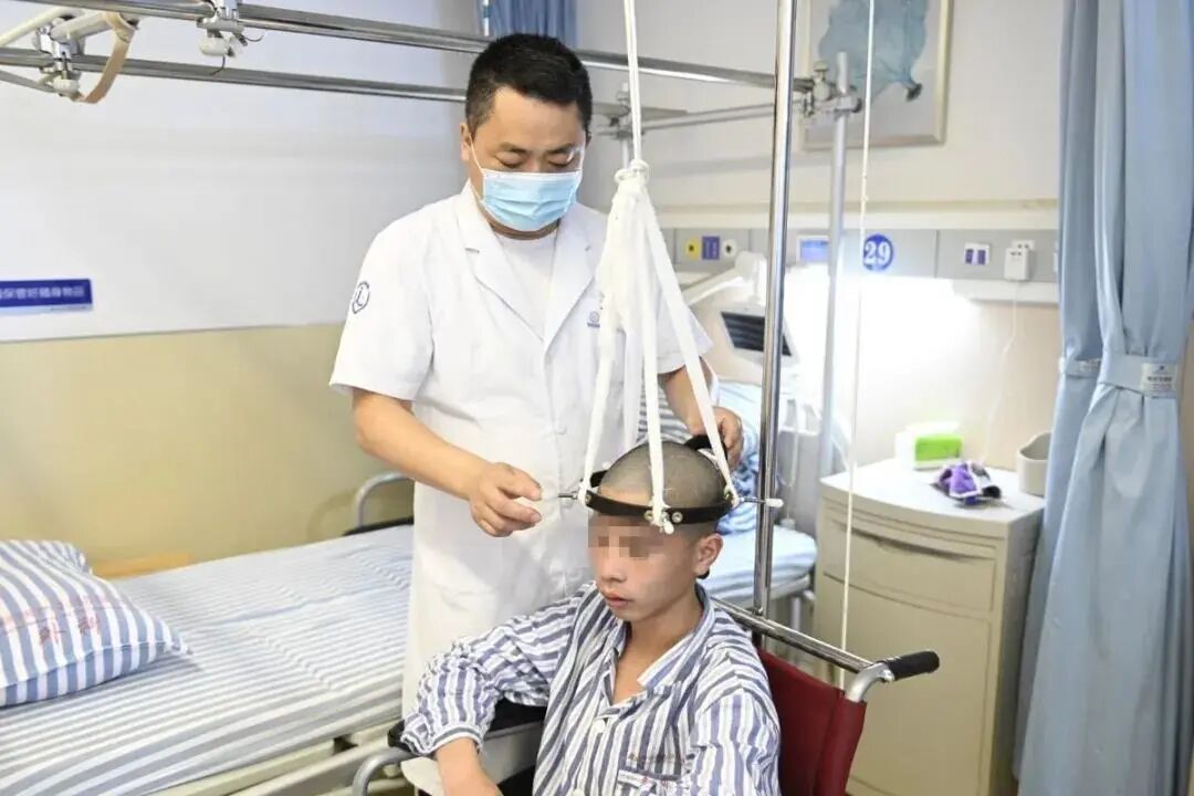 为此,患儿入院之初,骨科副主任赵伟就积极与国内脊柱侧弯矫治首屈一指的南京鼓楼医院联系,寻求技术支持;并带领我院骨科团队积极研究治疗方案,为患儿私人定制牵引治疗工具,增加其身体的耐受性。